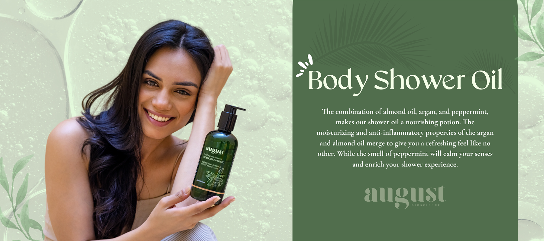 Peppermint, Argan Almond Body Shower Oil from August Bioscience is one unique plant-to-bottle formulation in the shower oil category. This Chemical Free Body Shower oil is a powerful blend of moisturising and anti-inflammatory properties derived from a potent combination of argan and almond oil. While the smell of peppermint calms your senses and enriches your shower experience, the argan and almond oil blend offers much-needed nutrients and hydration.